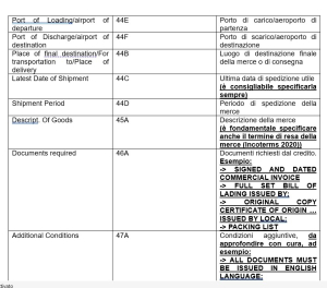 - La lettera di credito non è parte integrante della consegna/spedizione, ma della compravendita; per tale motivo, è importante, prima dell’emissione definitiva della lettera di credito, richiedere al cliente (importatore) una bozza della lettera di credito redatta dalla sua banca.