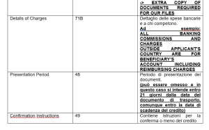 - Tutti gli oneri relativi ad eventuali discrepanze, emendamenti o penali (se previste) dalla lettera di credito devono essere puntualmente dettagliati.